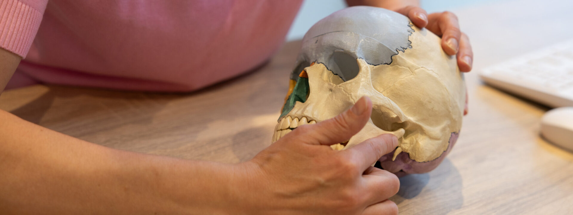 De schedel en de onderkaak zijn met elkaar verbonden door de kaakgewrichten. Als deze verbinding uit balans is, kunnen klachten optreden als een ‘knappende’ kaak of bijvoorbeeld pijn bij het kauwen, gapen, zoenen of praten..